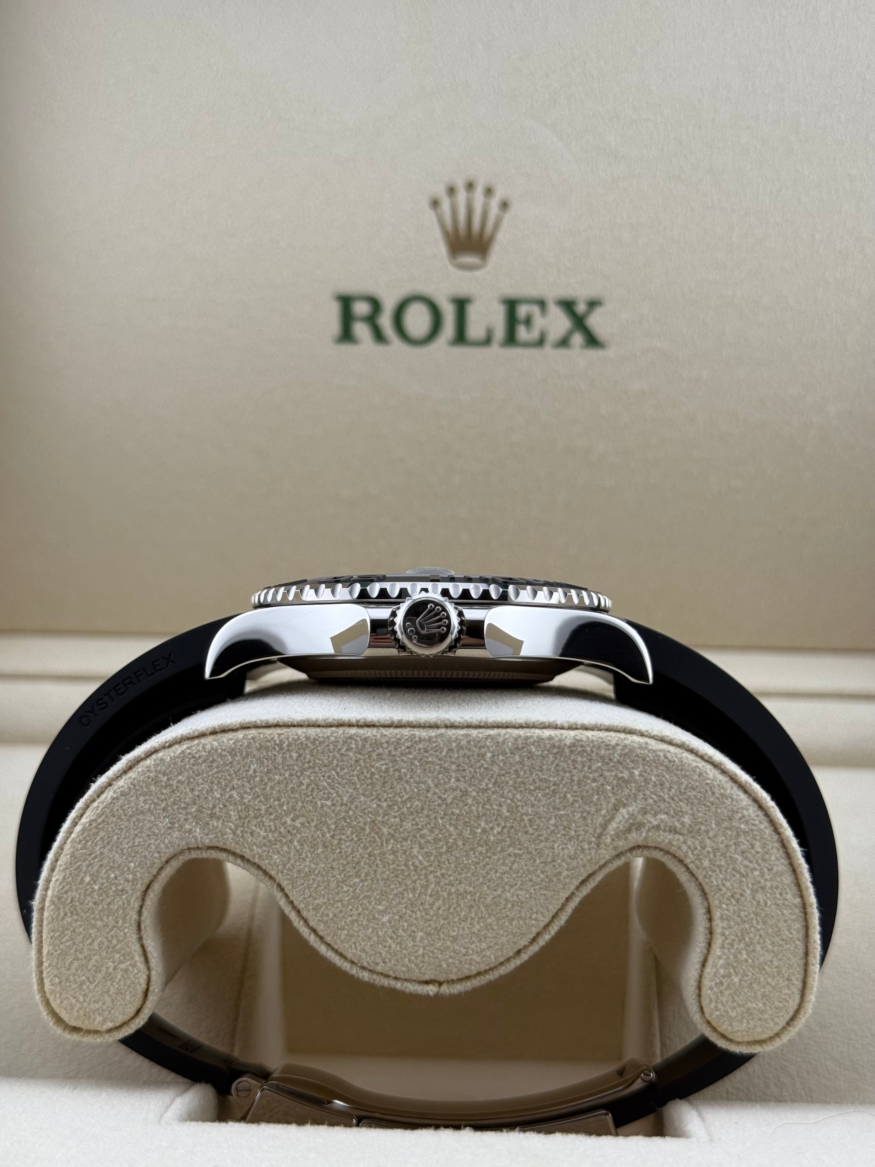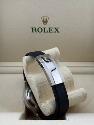 The Rolex Yacht-Master 42 ref. 226659 is a striking blend of sportiness and elegance. Introduced in 2019, it features a 42mm case crafted from 18k white gold, paired with a matte black Cerachrom bezel for a sophisticated, modern look. The black lacquer dial offers exceptional legibility with Chromalight luminescent hour markers and hands. Powered by the Rolex Calibre 3235, it delivers a 70-hour power reserve and Superlative Chronometer precision. Fitted on the comfortable and durable Oysterflex bracelet with an 18k white gold Oysterlock clasp, the 226659 is both luxurious and ready for the open sea.