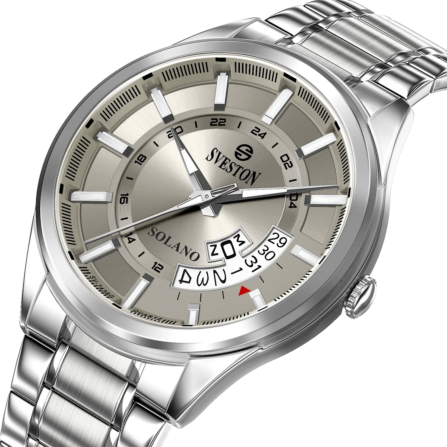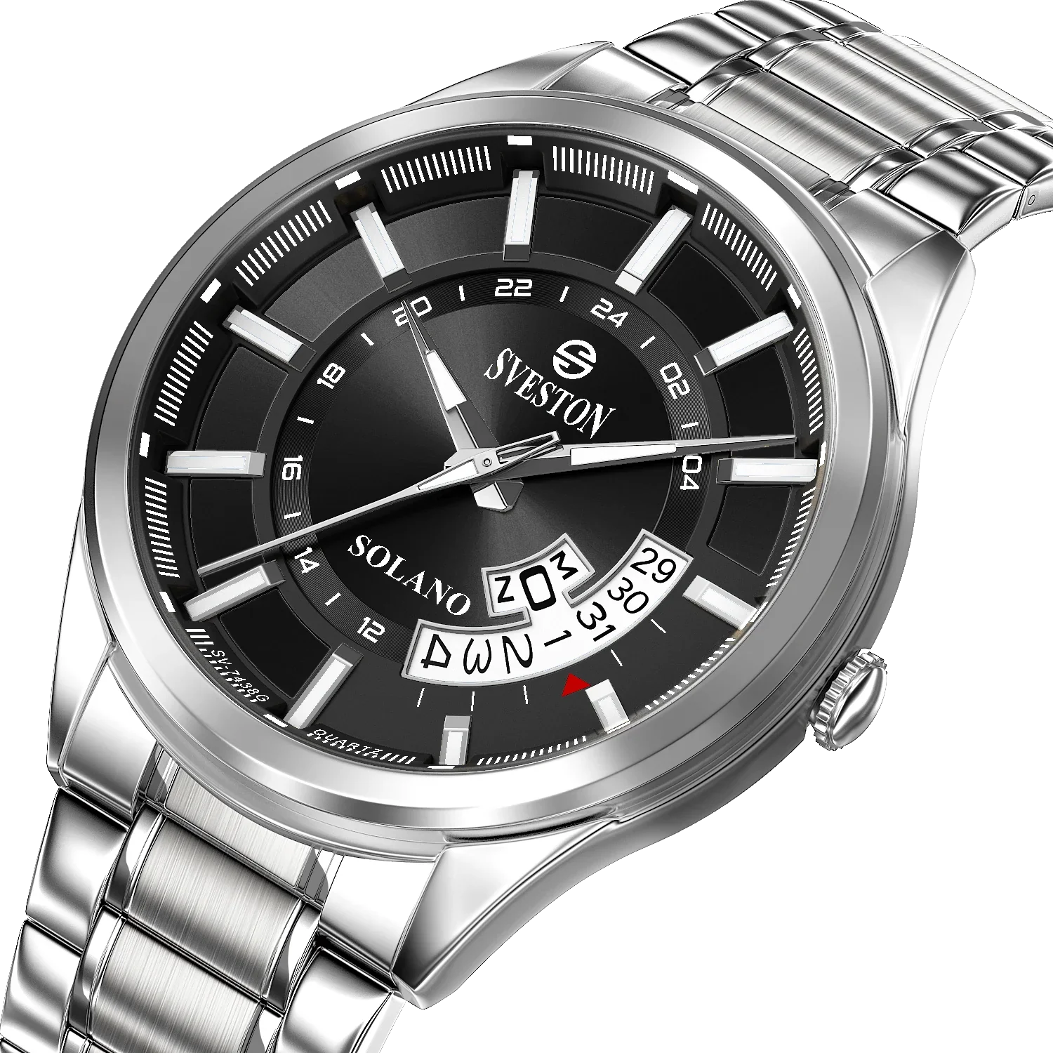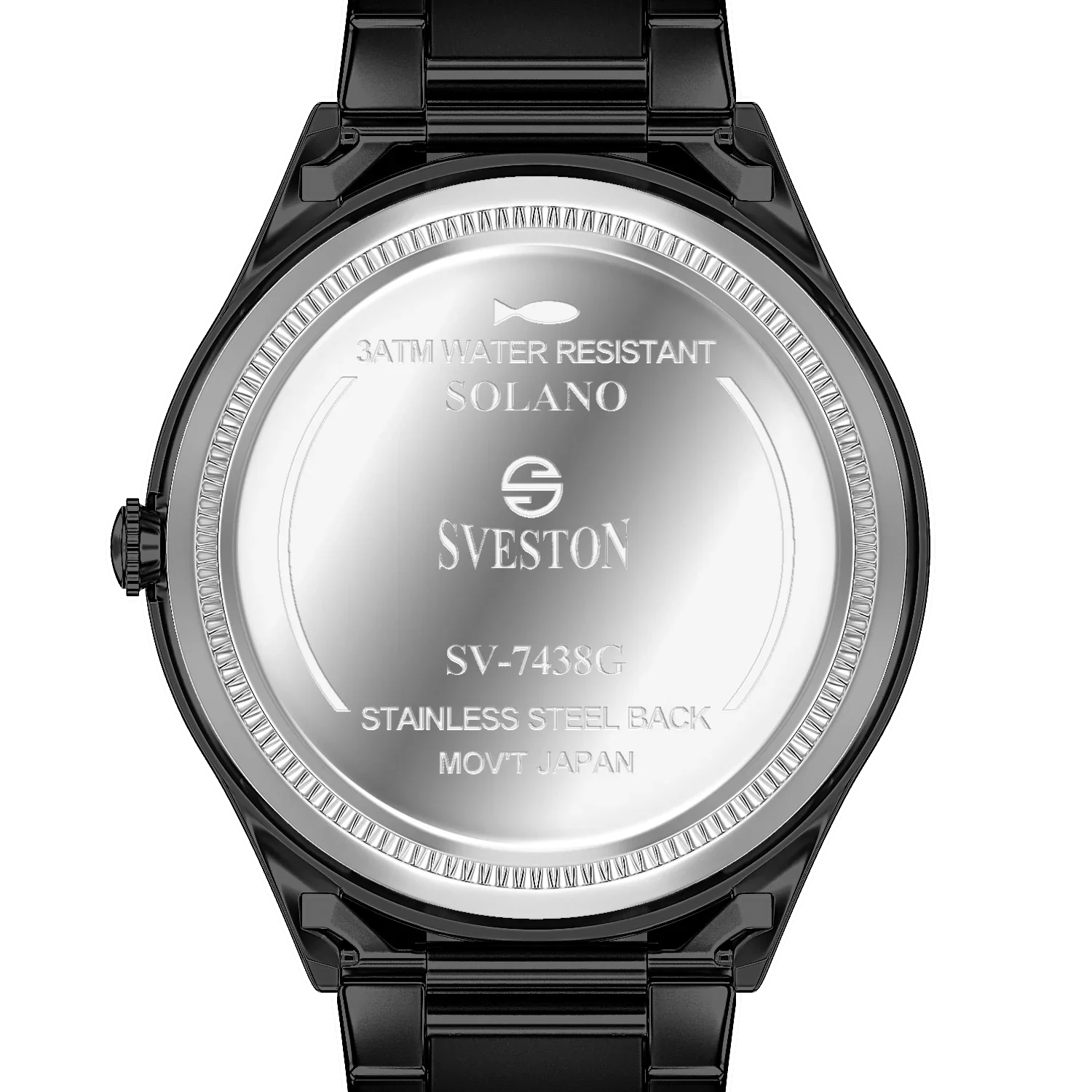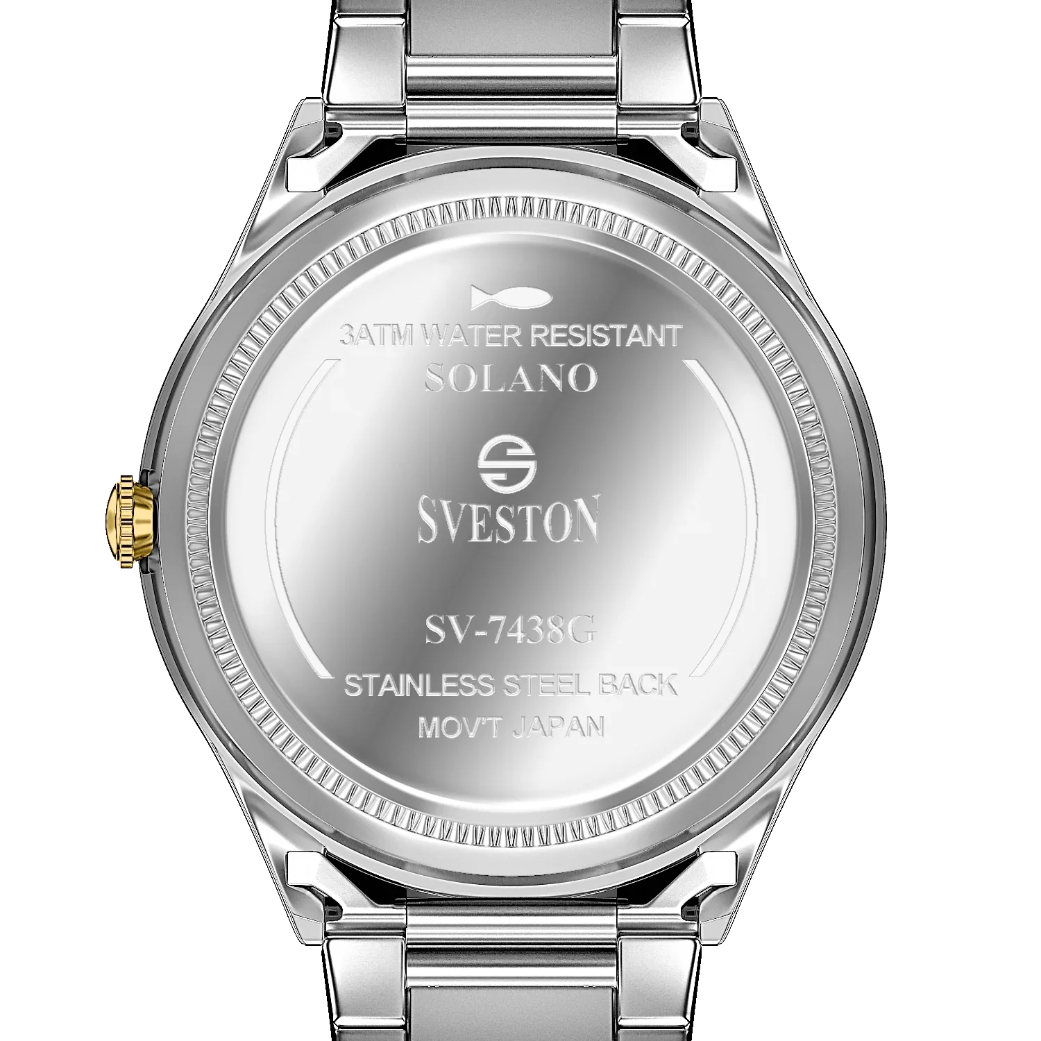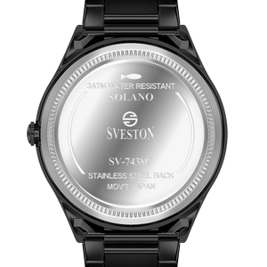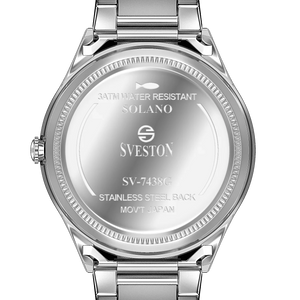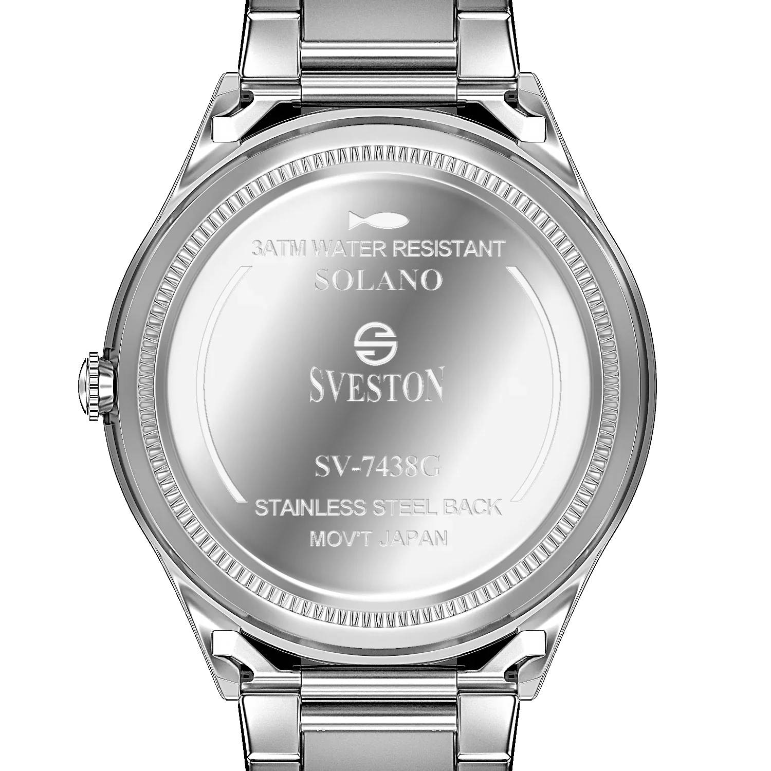 Experience luxury and precision with Sveston Solano a men's watch made with Japanese Quartz crafted from durable stainless steel it boasts a 38mm case size with a 49mm lug-to-lug distance and 3ATM water resistance weighing 128 grams this watch offers both style and substance